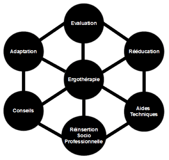 L’Ergothérapeute est le professionnel paramédical qui accompagne les personnes présentant des difficultés à réaliser une activité de la vie quotidienne (ou Occupation, en Anglais la traduction d’Ergothérapeute est Occupational Therapist). Les difficultés peuvent être de l’ordre de problématiques physiques, psychiques et/ou sociales. L’Ergothérapeute a également toute sa place en tant qu’acteur de prévention. L’objectif est « de permettre d´acquérir, de recouvrer ou de conserver un fonctionnement optimal dans leur vie personnelle, leurs occupations professionnelles ou la sphère de leurs loisirs, par l’utilisation d’activités concrètes s’y rapportant et tenant compte de leurs potentialités et des contraintes de leur environnement. » (Association des Ergothérapeutes, 1973)
